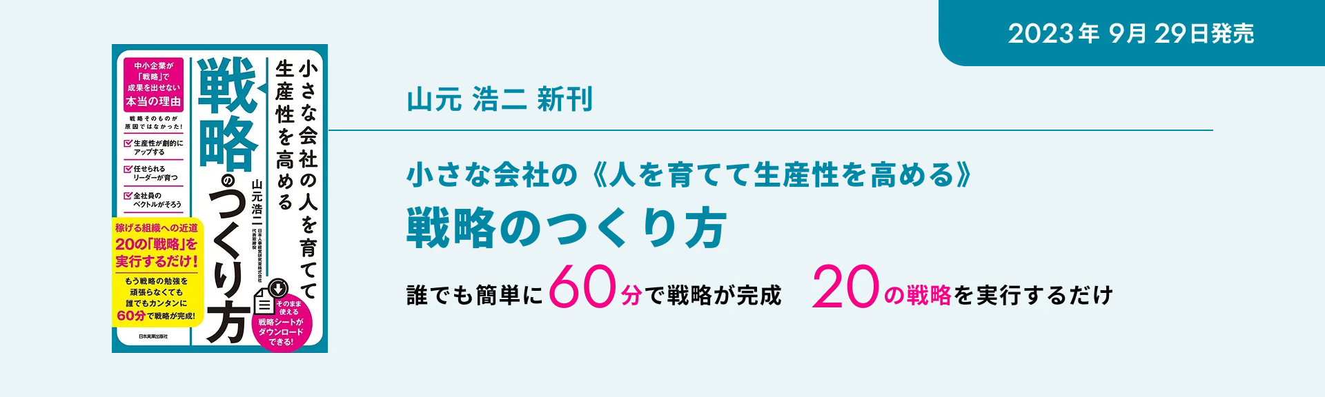 一方、中小企業はほとんどの仕事が属人化されています。これを改善すれば生産性があがります。これを「経営計画」と「人事評価制度」を連動させて運用することで、仕組みで組織が動くようになります。
