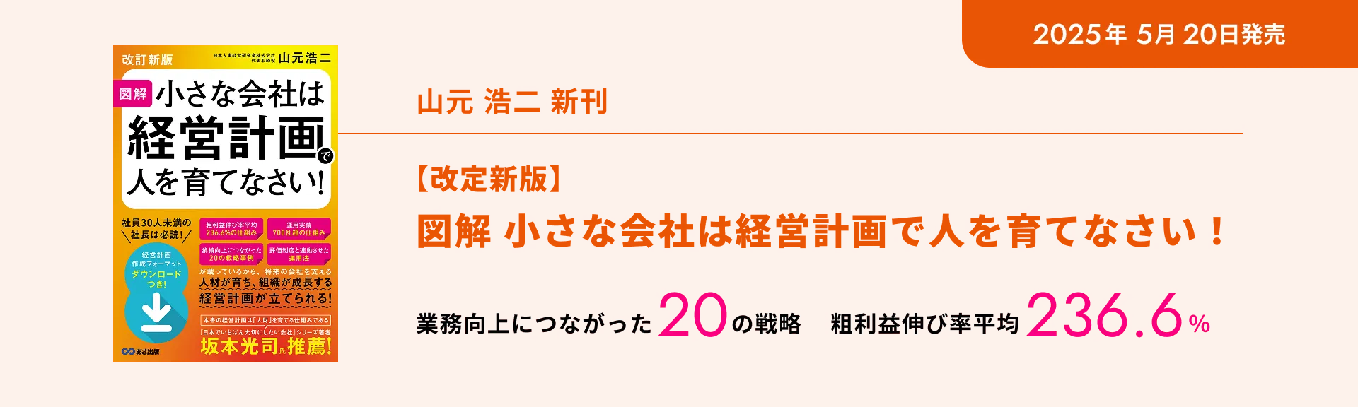 社員30人未満の社長は必読!「粗利益伸び率平均236.6%の仕組み」「運用実績700社超の仕組み」「業績向上につながった20の戦略事例」「評価制度と連動させた運用法」を掲載!将来の会社を支える人材が育ち、組織が成長する経営計画が立てられる!経営計画作成・運用に必要なフォーマットがダウンロードできる!
